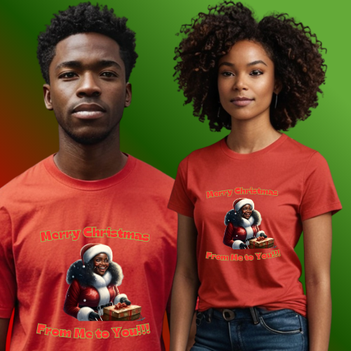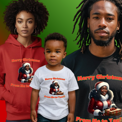 This design captures the warmth of the holiday spirit through a powerful image of cultural representation and connection with Mrs. Claus. It’s a reminder that love, tradition, and legacy belong in every celebration. This is a heartwarming design celebrating love, unity, and joyful representation.