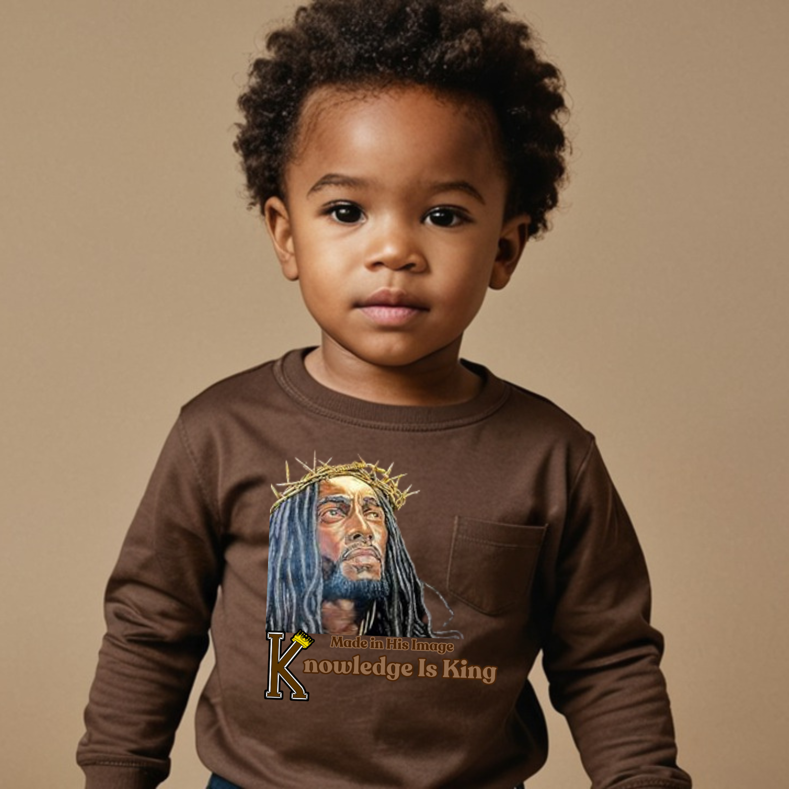 Introduce your toddler to fashion with our Made In His Image long sleeve t-shirt. The branded hoodie exudes cultural relevance, while providing comfort and style for your little one. Made with care using great materials, this creative and unique piece is a perfect addition to any wardrobe.